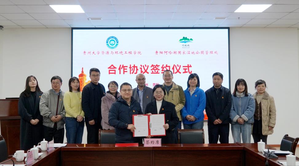 2025年12月4日,贵州大学资源与环境工程学院与贵阳阿哈湖国家湿地公园管理处“红岩绿脉喀斯特·研学科普先锋行”党建联建活动在阿哈湖公园管理处顺利开展。此次活动以党建为纽带深化校地协同,推动党建与生态保护、人才培养、科研创新深度融合,助力区域高质量发展。贵州大学党委常委、副校长、喀斯特地质资源与环境教育部重点实验室主任吴攀,资源与环境工程学院党委书记李波,院长付勇,正处级组织员陈义,党委副书记兼纪委书记刘红迎,党委委员陈世万等领导,带领喀斯特实验室教工党支部、环境科学与工程系教工党支部全体党员参加活动;贵阳阿哈湖国家湿地公园管理处总支书记、处长周佳,总支副书记、副处长曾磊,总支宣传委员、副处长周雯等负责人及管理处第一、二党支部支部委员参加活动。活动由贵阳阿哈湖国家湿地公园管理处处长周佳主持。