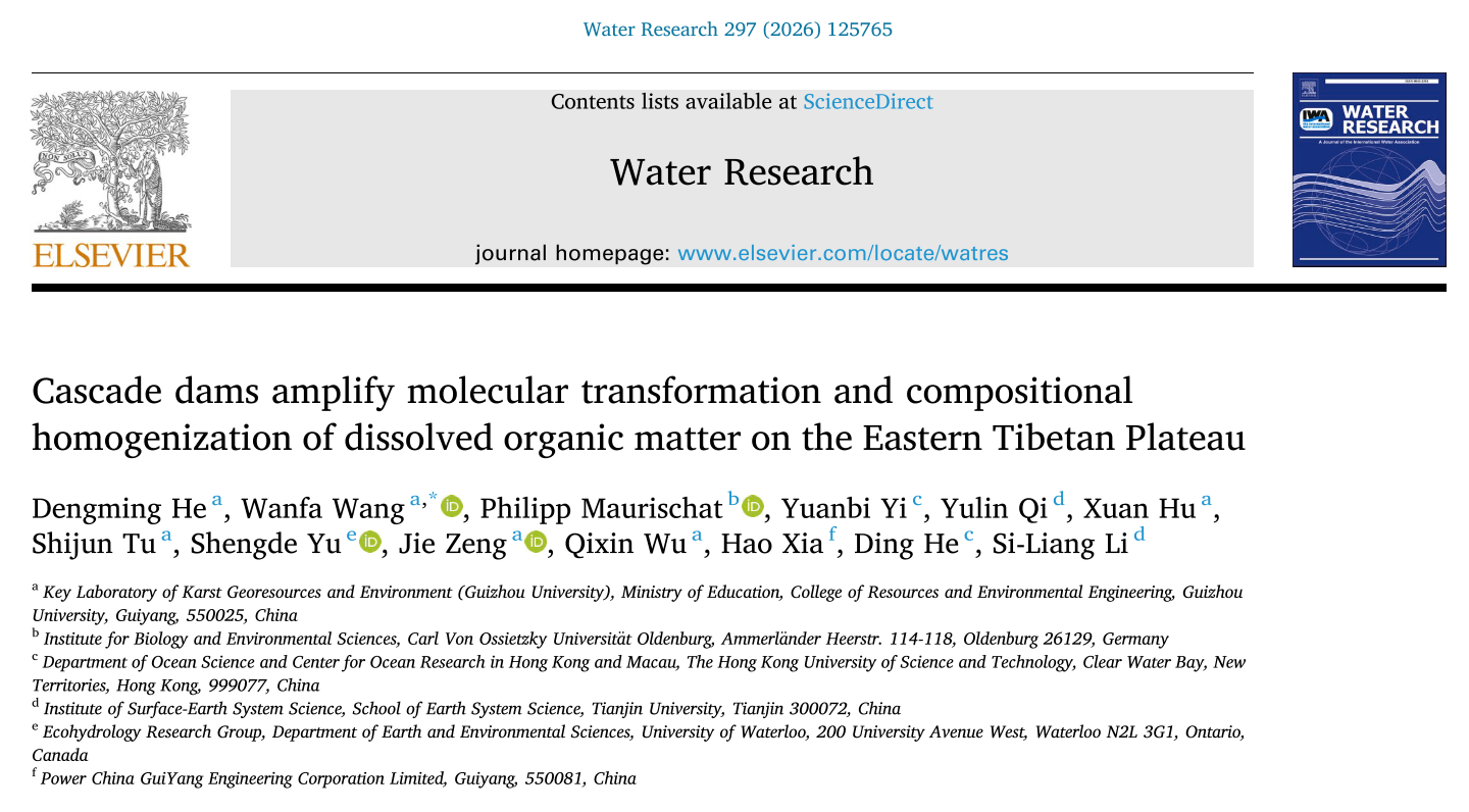 参考文献:Dengming He, Wanfa Wang, Philipp Maurischat, Yuanbi Yi, Yulin Qi, Xuan Hu, Shijun Tu, Shengde Yu, Jie Zeng, Qixin Wu, Hao Xia, Ding He, Si-Liang Li, Cascade dams amplify molecular transformation and compositional homogenization of dissolved organic matter on the Eastern Tibetan Plateau, Water Research, 297, 2026, 125765.